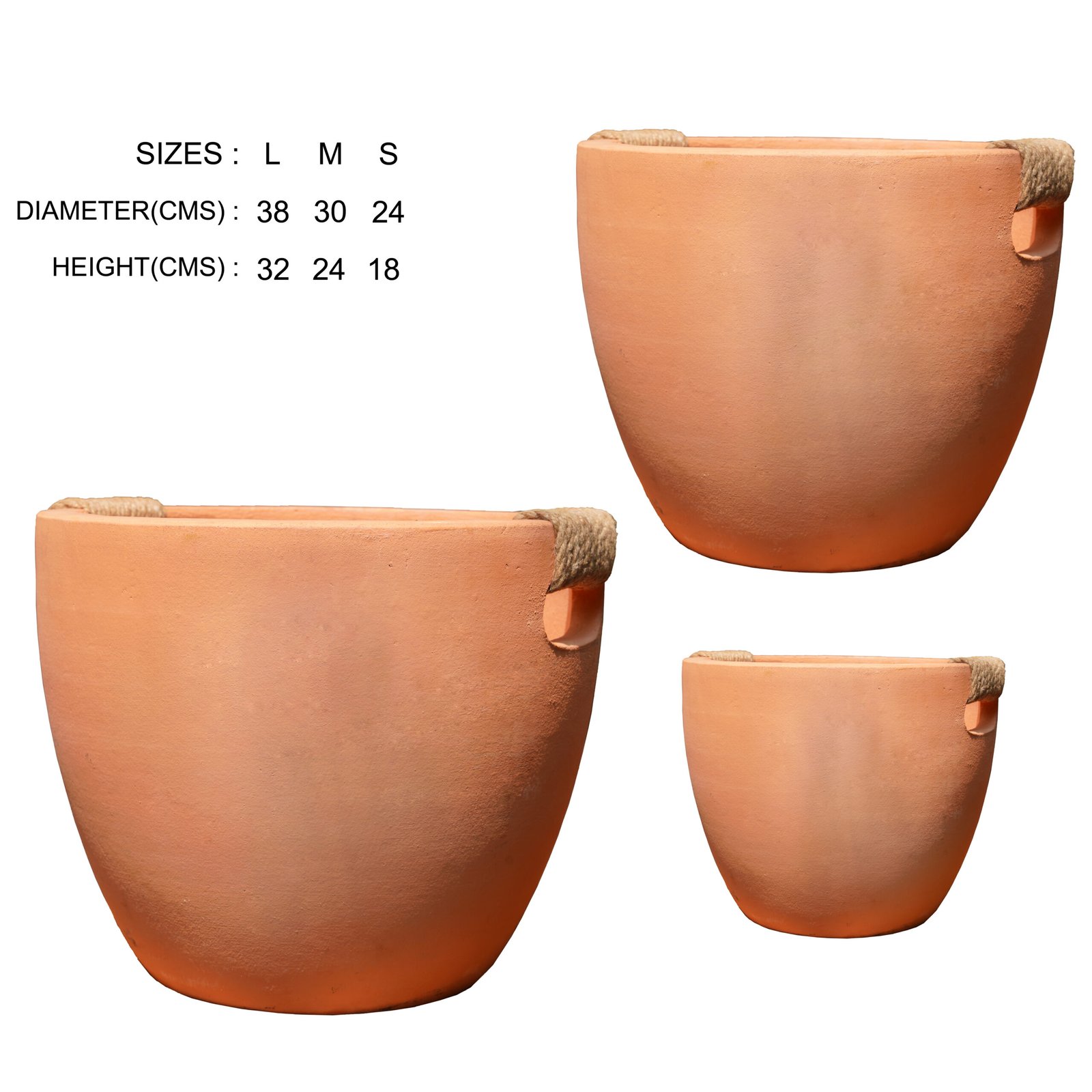 Thrown and finished by hand, the Rope Clasp Terracotta Planter is made from unglazed terracotta in its natural fired state — a warm, earthy tone that deepens slightly with watering and ages gracefully with use.
